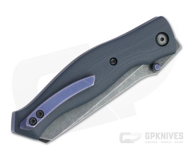 Handle: Solid anodized titanium liners support contoured, matte blasted G10 handle scales for a comfortable grip on the sweeping ergonomic handle. The scalloped liner lock is easy to operate and delivers solid lockup for safe use while the jimped back spacer delivers balance and added traction. Includes information card and custom printed microfiber storage bag.