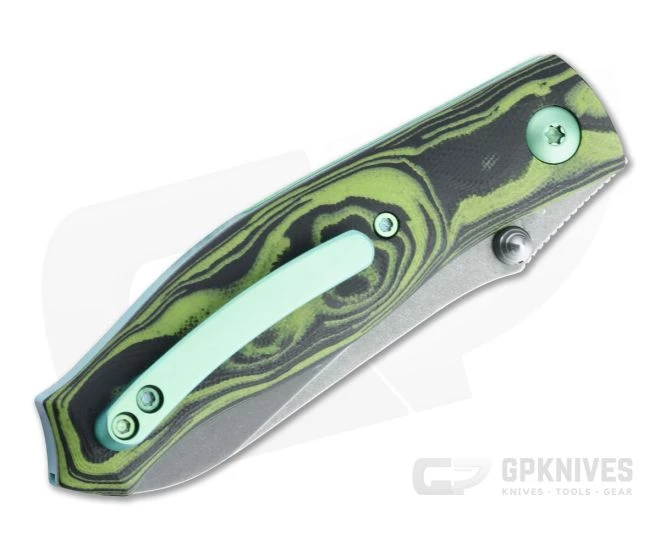 Full-time custom maker and mentor Alan Folts is well known for eye-catching style and functional designs, including his custom and production Minimalist neck knives. The Utility folder is a straightforward liner lock design that is ideal for users while offering visual appeal for collectors. This piece comes with a dark stonewashed CPM-154 Sheepsfoot blade, green anodized titanium liners, hardware, milled clip, and contoured, blasted marbled green G10 handle scales.