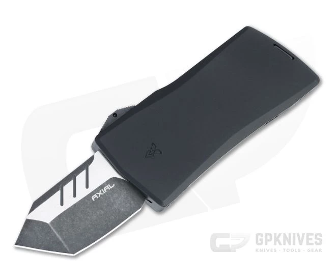 The California Legal Axial Dart is a compact double action out-the-front automatic perfect for everyday carry in more restrictive environments. A full size anodized aluminum handle houses a sub-2 inch blade that handles the majority of daily cutting tasks with ease while being legal in many areas. Utilize the deep carry clip for standard pocket carry or as a money clip for added discretion. This version has a two-tone Blackwash finished CPM-20CV Tanto blade and black anodized handle.