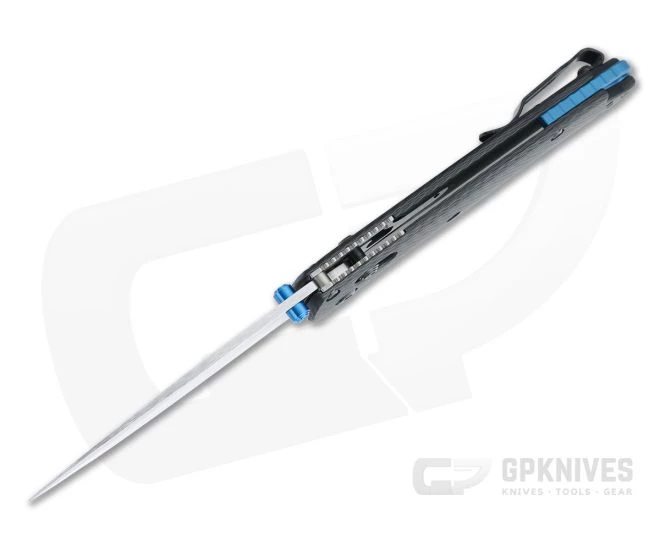 Handle: Premium carbon fiber delivers lightweight durability, visual appeal and comfort in hand thanks to the subtle contour and micro texture. Semi-open back construction is easy to clean and maintain with a blue anodized aluminum partial back spacer with lanyard attachment loop for added color. The AXIS lock mechanism is a robust and time-tested choice with ambidextrous operation. Carbon fiber delivers and even lighter 2.02 oz package.