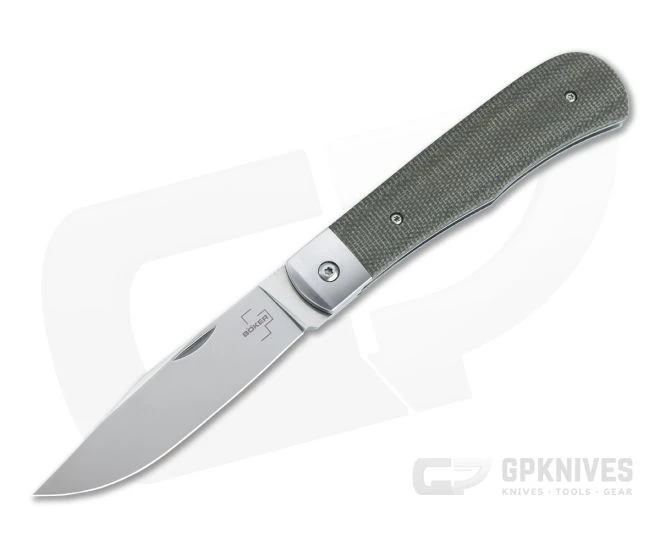 Handle: Stainless steel liners support short stainless bolsters and subtly contoured green canvas Micarta covers for a warm feel in hand and rugged style. Micarta is durable and weather resistant offering modern performance with timeless appeal. At over 4.5 inches, the handle offers an ample and secure grip for multiple tasks. One liner is cut to form the sturdy and reliable locking mechanism that is smooth in operation. Stainless hardware and partial back spacer round out the construction.