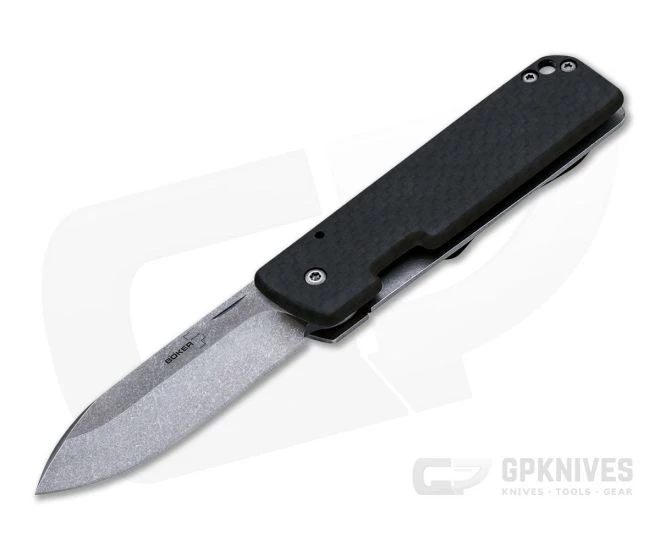 Handle:Â Rock solid and robust, the stonewashed stainless steel frame lock offers smooth operation and reliable lockup forming a solid foundation for the Lancer. Dual barrel spacers create an easy to maintain, open back construction and support the Carbon Fiber front scale delivering stylish and appealing look with lightweight performance. When folded the handle completely encapsulates the blade for clean carry. A hole at the pommel end allows for lanyard attachment.