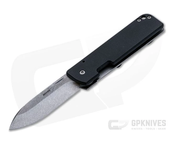 Blade:Â Functional and robust, the sub-3 inch spear point profile blade is made from D2 tool steel with a heavy, wear hiding acid stonewashed finish. Hollow ground for good slicing performance, the blade opens via a classic nail nick for two-hand operation. A subtle swedge at the tip enhances piercing performance while still retaining good durability.