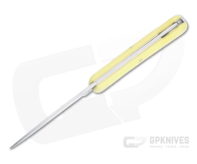 Handle: Construction is a simple and classic back lock mechanism with brass liners for buttery smooth operation supporting bright yellow polymer handles for a timeless look and durable, low maintenance and comfort handle. The brighter yellow also makes finding the knife a breeze. The simple lock back mechanism delivers secure lockup for use and smooth operation. A sub-2.5 ounce weight makes this a great daily carry backup knife.