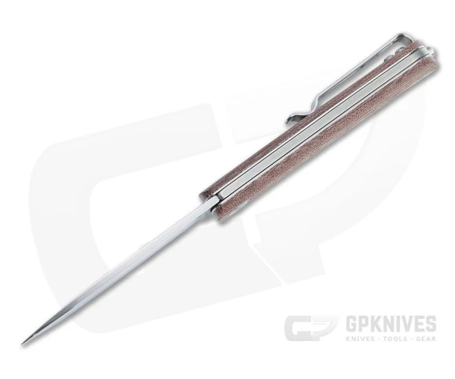 Handle:Â Handsome brown canvas Micarta scales are supported by skeletonized, polished stainless steel liners for a secure and comfortable handle. Micarta offers good durability and traction even when wet with a warm, tactile feel. A full length stainless back spring offers added safety on this non-locking folder while the hardened steel glass breaker end provides added utility.
