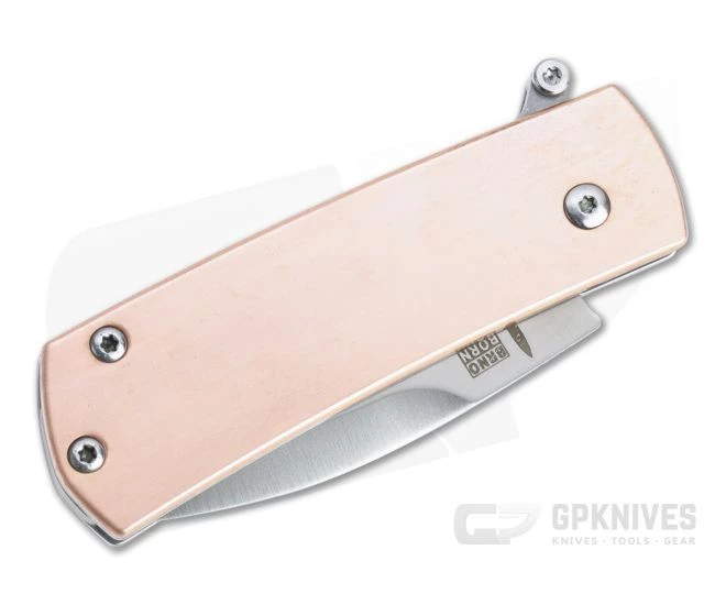 Handle:Â Stout stainless steel liners support hefty raw copper handle scales, housing the blade and stainless steel back spring which powers the automatic deployment. The copper scales will develop a unique patina over time with use and carry. Clean and minimalist, the handles offer a solid three-finger grip with a sturdy liner lock mechanism for safe use. An inline pin allows for lanyard attachment.