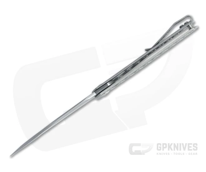 The Custom Brad Zinker Swayback Wharncliffe FLF takes his iconic ultralight frame lock construction and delivers it in an ultra-slim, ultralight front flipper. Built with precision hand fit and finish, the classic Swayback pattern is executed with modern style. This version comes with a dark stonewashed CPM-154 blade and matching titanium handle slabs with hole milling.