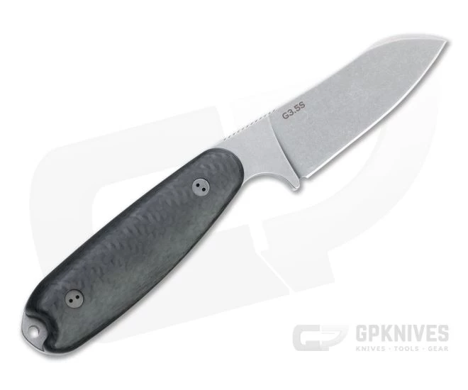 The Guardian3.5 fixed blade from Bradford Knives hits the sweet spot in size with a larger handle and blade than the popular Guardian3 while still being compact for daily carry and use. A great companion or replacement for an EDC folder, the G3.5 has an integral guard and strategic jimping for safe use, while the neutral handle design is comfortable in multiple grip positions. This Sheepsfoot variant has a stonewashed M390 blade and 3D carbon fiber scales.