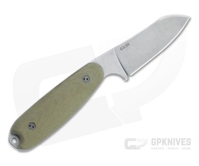 The Guardian3.5 fixed blade from Bradford Knives hits the sweet spot in size with a larger handle and blade than the popular Guardian3 while still being compact for daily carry and use. A great companion or replacement for an EDC folder, the G3.5 has an integral guard and strategic jimping for safe use, while the neutral handle design is comfortable in multiple grip positions. This Sheepsfoot variant has a stonewashed M390 blade and 3D OD Green canvas Micarta scales.