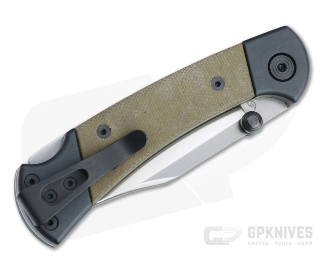 Handle:Â Lightweight, durable black anodized aluminum replaces heavy brass on the integral bolsters and liners with green canvas Micarta covers attached with screws for modern style and performance. A reliable back lock mechanism provides solid and secure lockup for use. The removable deep carry clip offers discreet carry thanks to the durable black Cerakote coated finish.