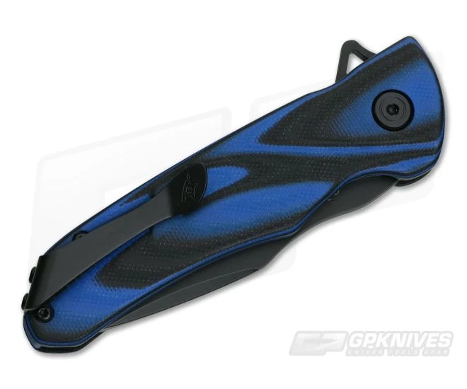 Handle:Â Full, black coated stainless steel liners create the foundation while contoured Blue & Black G10 make for a comfortable, secure grip. The generous handles should fit easily into most small to medium-sized hands. A hardy liner locking mechanism in the handle is easy to use and provides secure lockup.