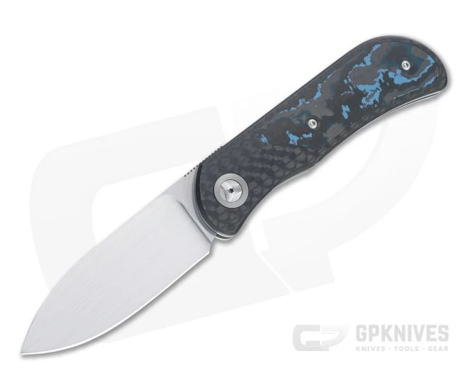Handle: Thick titanium liners support the solid, lightweight Low Void Aerospace (LVA) carbon fiber scales. Smooth carbon fiber has a stylish look for dress carry elevated by the striking Arctic Storm Fatcarbon inlays, custom pivot and pivot collars. One liner forms the simple liner lock mechanism with silky ceramic detent, delivering smooth operation and solid lockup for safe use. Includes nylon zip pouch and Certificate of Origin.