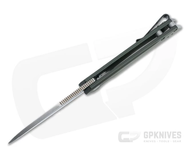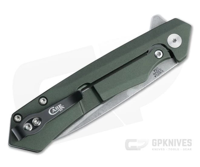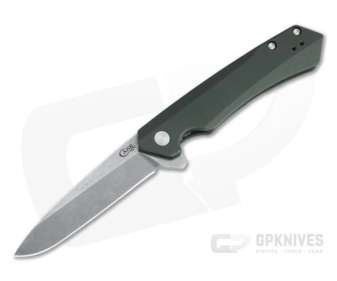 The Case Knives Kinzua flipper is a contemporary EDC folder inspired by the shapes of classic Japanese swords. As part of the Modern Everyday Carry line the Kinzua frame lock offers Case quality and American production with premium materials and fast flipper deployment on a ball bearing pivot. This version comes with a stonewashed CPM-S35VN spear point blade and OD Green anodized aluminum handle.
