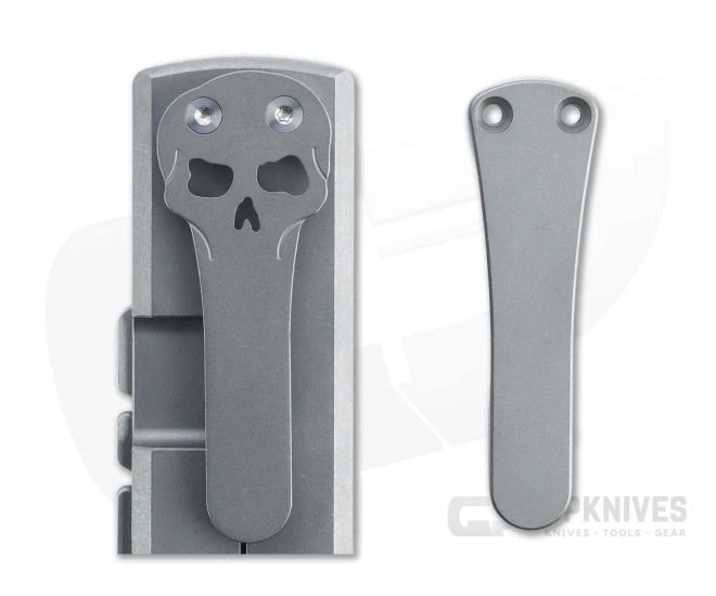 Carries via a right hand milled titanium clip. Skull clip installed, plain clip included.