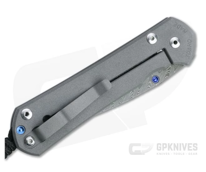 The Sebenza 31 is an update to the time-tested and proven design of the classic Sebenza 21. Updated features including a Ceramic Ball Interface frame lock, off-set clip, improved ergonomics, full front inlay and tighter tolerances from improved machining processes. Sebenza means “work” in Zulu, and the heirloom quality model 31 will see plenty of work over its lifetime. This Large version comes with a Chad Nichols stainless Boomerang Damascus blade, blue titanium accent hardware and plain blasted titanium handles.