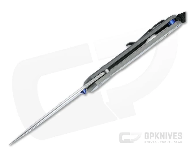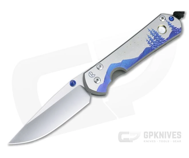 Handle: Matte gray blasted 6AL4V titanium handle slabs have a subtle texture and develop a unique patina with time and carry contrasting the fine satin front which serves as the canvas for a unique milled and anodized custom graphic. Each “Night Sky” themed custom graphic is unique. This one features the Big Dipper constellation, mother-of-pearl “full moon” inlay and is an exceptional collector’s piece. Equipped with a Ceramic Ball Interface the Reeve Integral Lock delivers “bank vault” lockup with increased reliability and lock life. Includes a tube of fluorinated grease, microfiber cloth, leather slip pouch, and information packet.