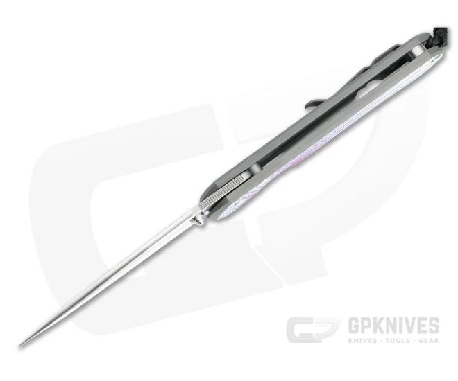 Handle: Matte gray blasted 6AL4V titanium handle slabs have a subtle texture and develop a unique patina with time and carry contrasting the fine satin front which serves as the canvas for a unique milled and anodized custom graphic. Each custom graphic is unique making this a fine piece for users and collectors alike. The Ceramic Ball Interface equipped Reeve Integral Lock provides “bank vault” lockup with increased reliability and lock life. Includes a tube of fluorinated grease, microfiber cloth, leather slip pouch, and information packet.