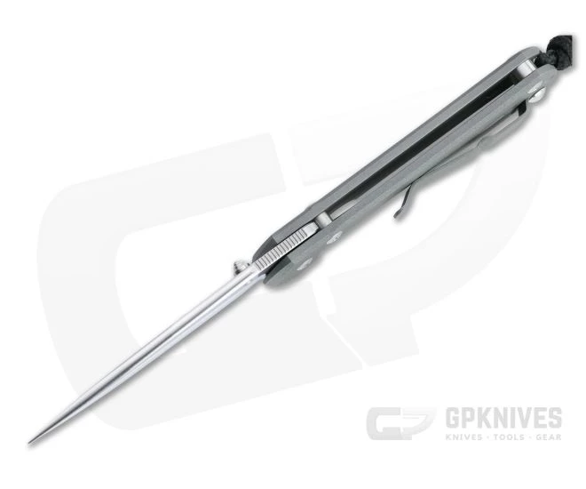 Handle: Matte gray blasted 6AL4V titanium handle slabs have a subtle texture and develop a unique patina with time and carry. Blasted titanium contrasts the fine satin front which serves as the canvas for a unique custom graphic with a hematite cabochon inlay. Each custom graphic is unique making this a fine piece for users and collectors alike. The Small 31 offers a full grip with compact carry while the Ceramic Ball Interface equipped Reeve Integral Lock provides “bank vault” lockup with increased reliability and lock life. Includes a tube of fluorinated grease, microfiber cloth, leather slip pouch, and information packet.