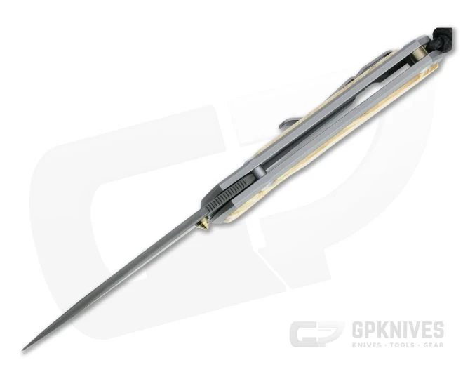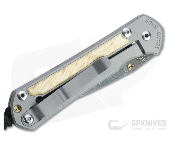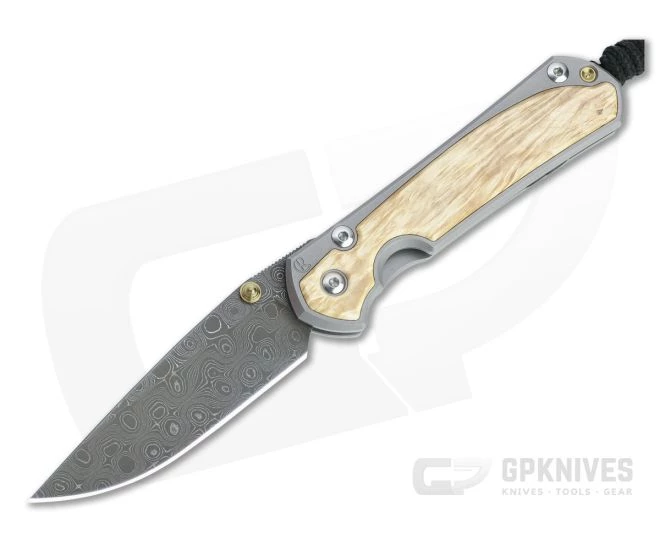 Chris Reeve Small Sebenza 31 Raindrop Damascus Box Elder Inlaid Titanium Folding Knife