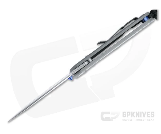 Handle: Matte gray blasted 6AL4V titanium handle slabs have a subtle texture and develop a unique patina with time and carry. Blasted titanium contrasts the fine satin front which serves as the canvas for a unique “Night Sky” custom graphic with moth-of-pearl “full moon” cabochon inlay and Big Dipper constellation detail. Each custom graphic is unique making this a fine piece for users and collectors alike. The Small 31 offers a full grip with compact carry while the Ceramic Ball Interface equipped Reeve Integral Lock provides “bank vault” lockup with increased reliability and lock life. Includes a tube of fluorinated grease, microfiber cloth, leather slip pouch, and information packet.