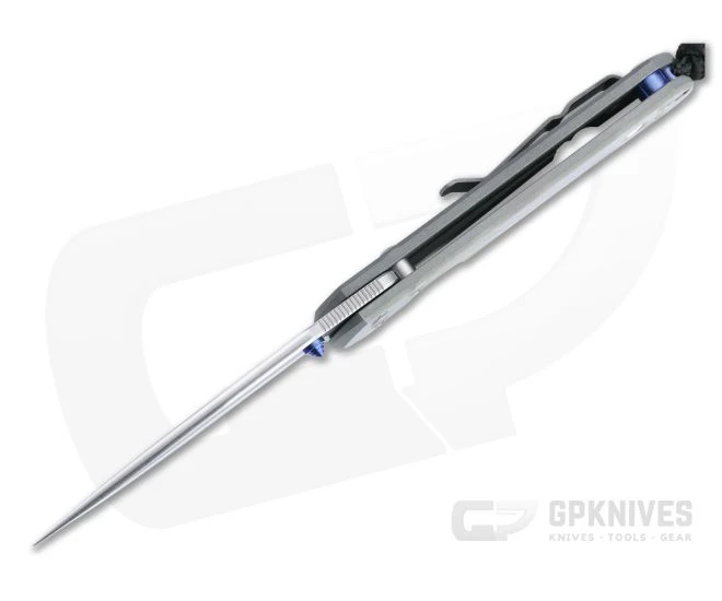 Handle: Matte gray blasted 6AL4V titanium handle slabs have a subtle texture and develop a unique patina with time and carry. Blasted titanium contrasts the fine satin front which serves as the canvas for a unique “Night Sky” custom graphic with moth-of-pearl “full moon” cabochon inlay. Each custom graphic is unique making this a fine piece for users and collectors alike. The Small 31 offers a full grip with compact carry while the Ceramic Ball Interface equipped Reeve Integral Lock provides βbank vaultβ lockup with increased reliability and lock life. Includes a tube of fluorinated grease, microfiber cloth, leather slip pouch, and information packet.
