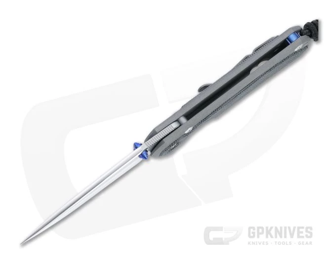 The Sebenza 31 is an update to the time-tested classic Sebenza 21 with subtle enhancements in the design. Updated features include: Ceramic Ball Interface, off-set clip design, improved ergonomics, removal of fixturing hole on front handle, re-designed inlays (select models) and tighter tolerances from improved machining processes. Sebenza means “work” in Zulu, and the model 31 will see plenty of work as it is built with heirloom quality to last. This version comes with a drop point, CPM-S45VN stainless steel blade, blasted titanium handles and black canvas Micarta inlays with blue hardware and double lugs.