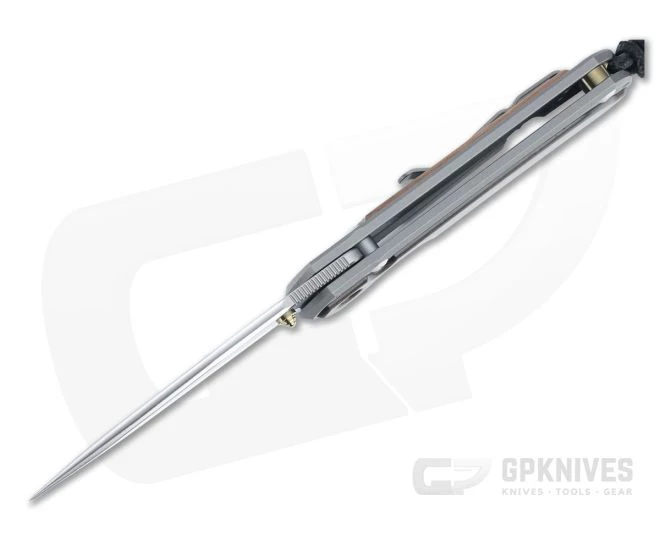 Handle: Upgraded with a stunning glass-bead blast finishing, the 6AL4V titanium handle slabs have a smooth, silky feel. The front Macassar Ebony inlay is a large, single piece that lends elegance to the sleek design. A Reeve Integral Lock utilizes the titanium frame to deliver “bank vault” lockup, while the Ceramic Ball Interface increases lock reliability and life while delivering smooth operation. Includes a tube of fluorinated grease, microfiber cloth, leather slip sheath and information packet.