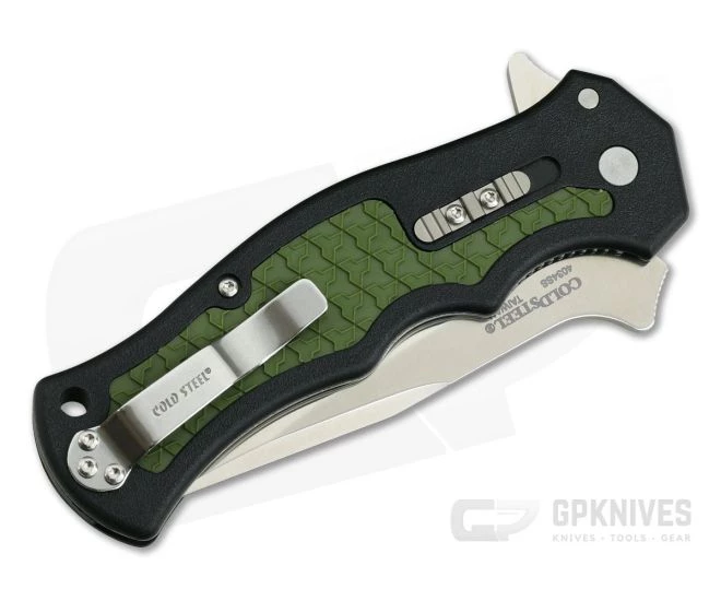 Handle:Â Durable, lightweight and economical black glass reinforced nylon scales are inlaid with high traction OD Green rubber inlays that pair with the grooved and ergonomic lines and dual guard for optimal security in the hand. The single stainless liner forms a strong leaf spring liner lock that is backed up by a secondary slide safety for a lock that is extremely resistant to shock and impact while being easy to operate with one hand.