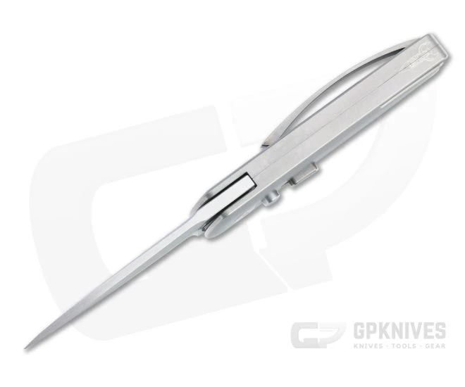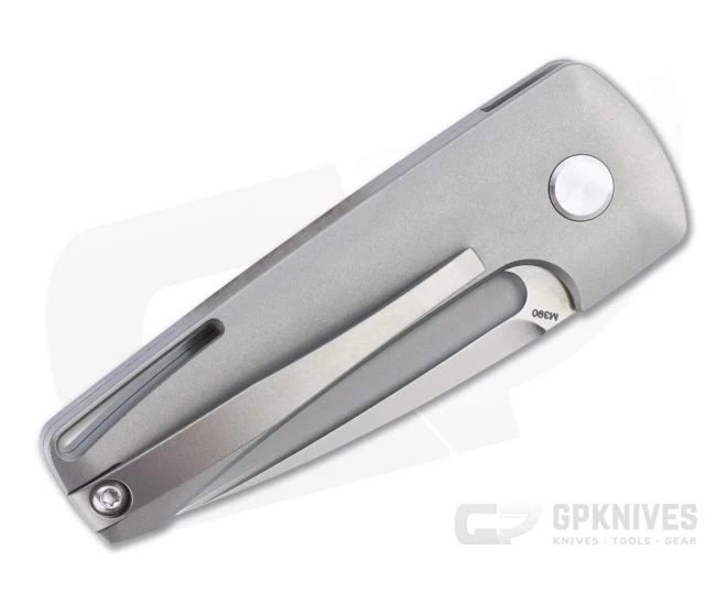 Handle:Â Made from contoured slabs of machined and tumbled titanium, the handle has a balanced feel with a +2 finger grip with a long lanyard hole for additional real estate if needed. The button lock is rock solid and reliable for safe use backed by a slide safety in open and closed positions. Includes padded hard plastic case.