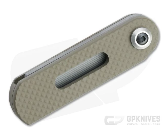 Part balisong part higonokami, the minimalist D Rocket Design OvalMoon is a bit of both with a magnetic latching handle and bali style swivel pivot operation. Open the top handle cover to access a chisel ground Sheepsfoot blade that rotating out from the bottom handle. Simple, fun, and functional this solid little folder is an ideal choice for urban or office carry. This version comes with a blasted matte gray AEB-L blade and textured Flat Dark Earth (FDE) Cerakote coated aluminum handles.