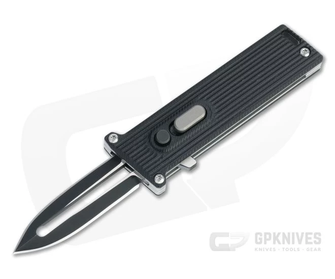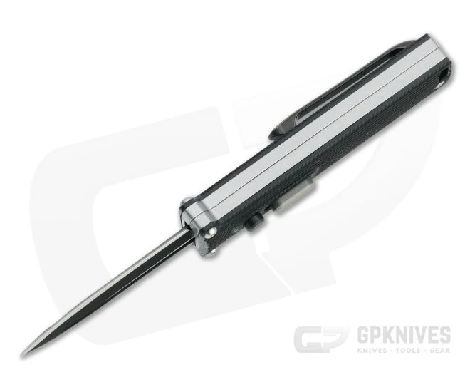 Handle:Â Simple and sleek, the steel handle houses the blade, mechanism, and button lock in a lightweight, compact package with high traction G10 scales for a secure grip. The dual guard delivers plenty of safety in use and fits the dagger design. The lock is rock solid, backed by the slide safety that prevents unintentional deployment in carry and lock disengagement in use.Â