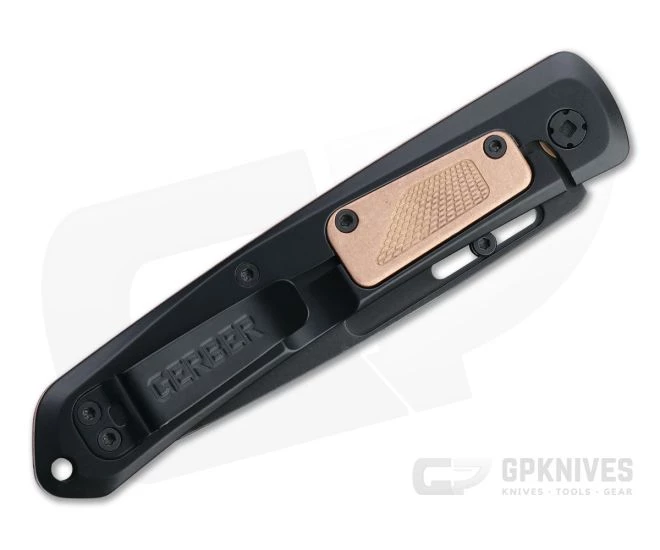 Handle: The open back frame lock construction reduces weight and makes for easy maintenance. Solid and smooth in operation, the black steel frame lock delivers secure lock up and complements the copper front scale and pinch plate which makes operation even more reliable. The copper front scale completes the simple, ergonomic and streamlined handle construction along with black hardware and generous lanyard hole.