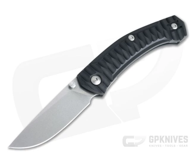 Blade:Â Riding on a bronze washer pivot, the classic drop point blade deploys with snappy action via the dual stepped thumb studs. Stonewashed for a rugged, wear hiding look, the M390 blade has a high flat saber grind for a balance of strength and slicing performance. The blade has minimal taper toward the tip giving added strength for piercing and heavy use.