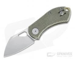 Inspired by animated mouse Nibbles from Tom and Jerry, the GiantMouse ACE Nibbler is a diminutive liner lock folder that packs serious performance for light daily tasks. Small and friendly, this design is ideal for urban carry and office use. This version comes with a stonewashed CPM-20CV blade and green canvas Micarta handle with brass spacer. Made with precision by Reate.