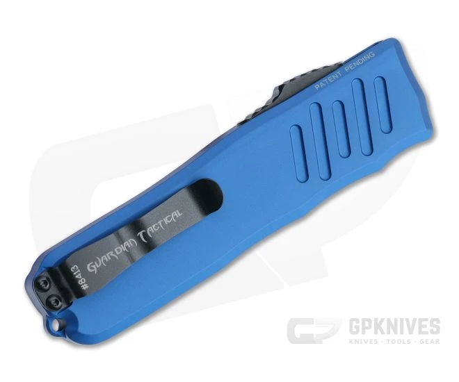 The Recon-035 is a modern and innovative, double action, out the front automatic that is perfect for everyday carry. With patented steel thumb slide base and floating blade construction the Recon-035 is smooth and reliable in its operation while having minimal play and a rock solid feel. This version comes with a two-tone black Elmax partially serrated Tanto blade and blue handle with black hardware.