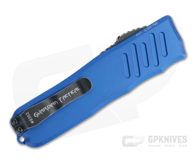 The Recon-035 is a modern and innovative, double action, out the front automatic that is perfect for everyday carry. With patented steel thumb slide base and floating blade construction the Recon-035 is smooth and reliable in its operation while having minimal play and a rock solid feel. This version comes with a dark stonewashed, double edge Elmax blade and blue anodized handle.
