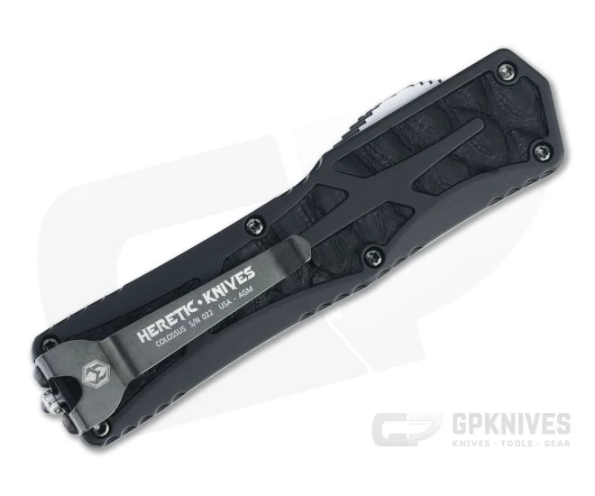Heretic Custom Colossus Double Edge Hand Ground Reptilian Damascus Python Inlaid Black OTF Automatic 006