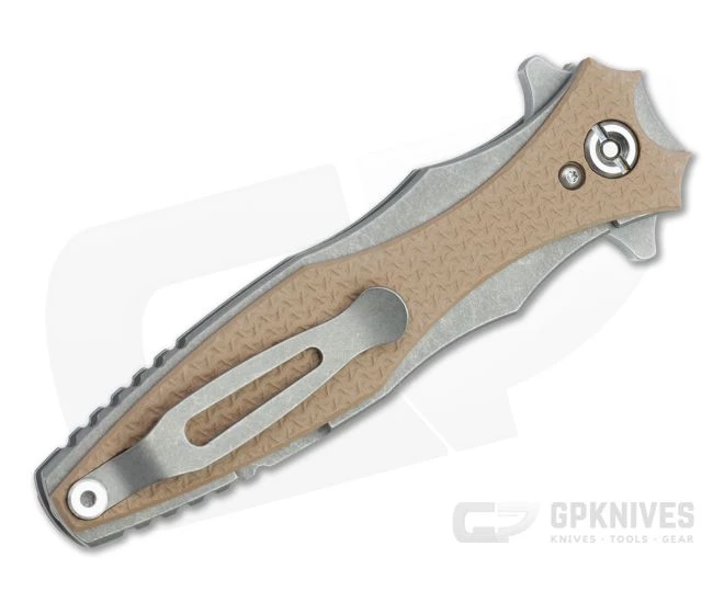 The Maximus flipper from Rick Hinderer Knives is a throwback to classic tactical blades with dual guards, a symmetrical handle design and dagger style blade with a modern folder construction. Updated with the Tri-Way pivot system deployment is fast and smooth with a well dialed in detent for decisive action. This version comes with a single edge, bayonet grind blade of Working Finish CPM-20CV, a matching titanium frame and textured Coyote tan G10 overlays.