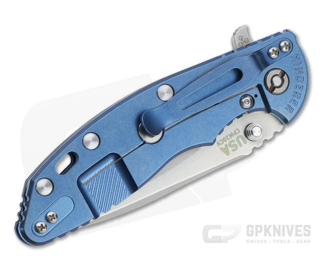 The Hinderer Knives XM-18 3.5” is a precision-crafted hard-use tactical folder you can carry every day. It features an integral flipper tab and dual thumb studs for fast, easy operation in a mid-sized platform designed to fit most hands comfortably while handling nearly any task. Easy, one-hand operation and a reliable lock system are the foundation of the XM series. This recurve variant comes with a stonewashed 20CV blade, stonewashed blue anodized frame and layered blue/black G10 scale.