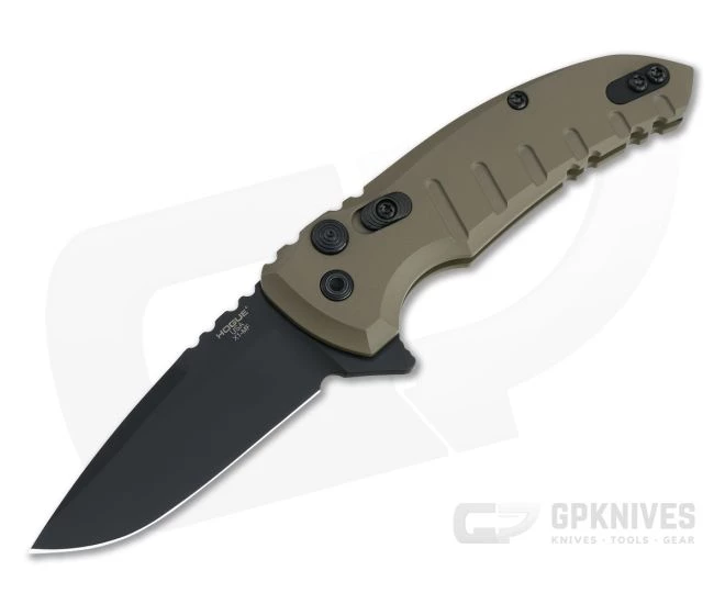 The Hogue X1 MicroFlip is the manual counterpart to the A01 MicroSwitch. It offers the same solid performance and compact platform with manual flipper deployment. Premium materials paired with precision American manufacturing make the MicroFlip an excellent daily carry choice. This version comes with a black Cerakote coated CPM-154 drop point blade and matte FDE (flat dark earth) aluminum handles.