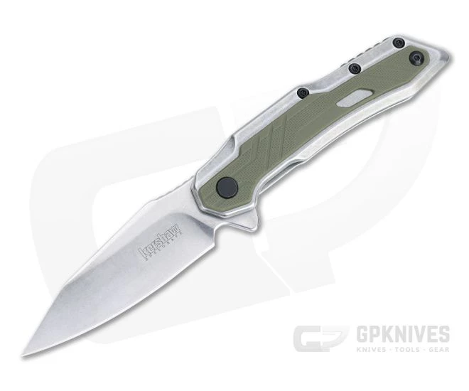Offering a premium option in the Kershaw Starter Series the Salvage SpeedSafe assisted flipper makes a solid daily carry flipper with its all-purpose reverse Tanto blade, stainless steel frame lock construction and high traction olive GFN overlays. Sweeping lines and subtle details like a matching green back spacer and over travel stop give the Salvage plenty of style while a solid build and quality materials deliver a practical cutting tool that accomplishes the task at hand.