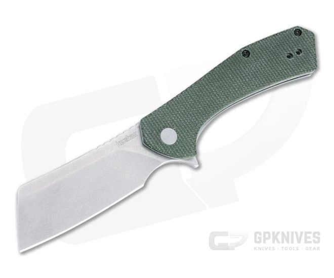 The Kershaw Static design is a stylish and functional cleaver profile flipper and an ideal choice for a compact everyday carry folder. The blade rides on a KVT bearing pivot for fast deployment and smooth operation while the rugged construction and versatile design delivers a practical and stylish cutting tool. This liner lock variant comes with a stonewashed D2 tool steel blade and Green canvas Micarta handle scales.