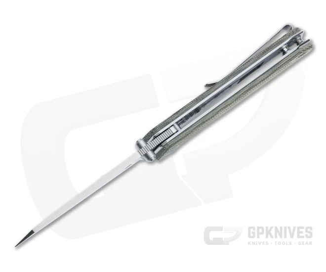 Handle: Proud stainless steel liners support canvas Micarta handle scales for good traction and modern performance. The liners are skeletonized for weight reduction and balance, and ride proud to the scales for a more contoured feel while being thin to carry. One liner forms the locking mechanism and is smooth to operate, delivering secure, solid lockup for safe use. Construction is completed with satin hardware, dual barrel spacers and a lanyard hole cutout.