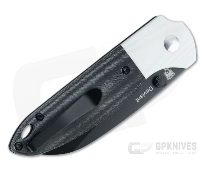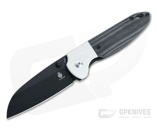 The utilitarian Vanguard Series from Kizer offers performance, high quality construction and a budget friendly platform. Designer Chris Conaway of Sheepdog Knives of c01c fame is back again with the Deviant liner lock folder. Designed with a more streamlined design for ease of carry the Deviant has a solid stainless steel liner construction and utilitarian Sheepsfoot blade riding smooth on bearing making it a great choice for daily or dress carry. Â This ‘Tuxedo’ version has a black M390 blade, black liners and black Micarta scales with white G10Â bolsters.