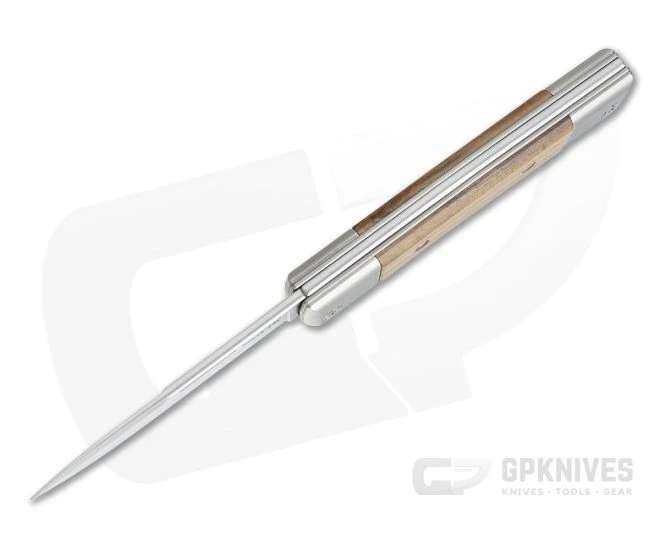 Handle:Â Crowned titanium liners support beautiful handles with scales of Santos Wood framed by grooved titanium bolsters at both ends. The back-spring is crowned along with the chamfered scales and bolsters making this knife very comfortable in the hand. The moderate back spring tension delivers smooth pull with snappy half and full stops for secure use.