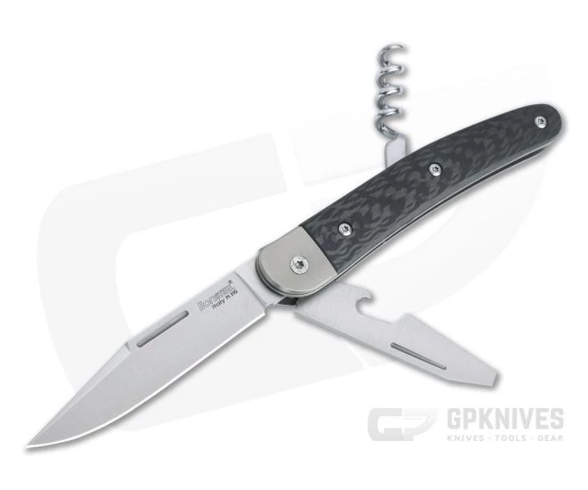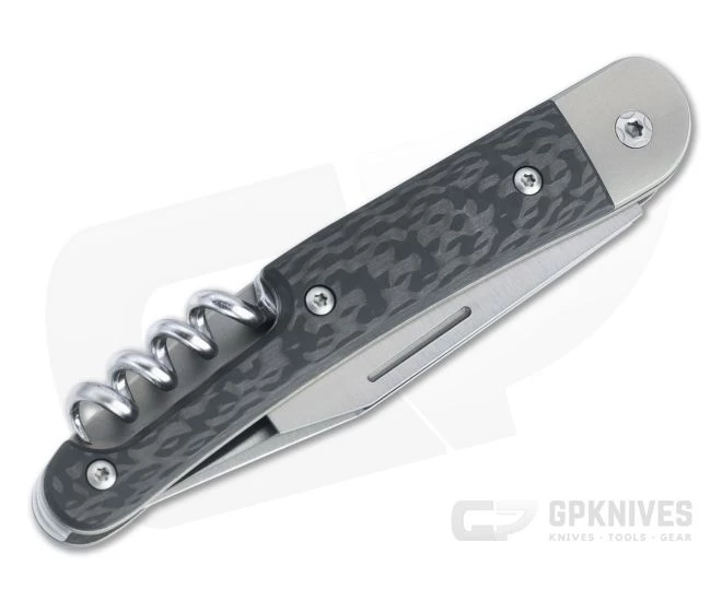 The Jack from LionSteel seamlessly blends modern construction and materials with traditional design with precision fit and finish. This traditional style slip joint is built on a titanium liner framework with titanium bolsters and hardware and a satin finished M390 stainless steel blade. This three blade version comes with carbon fiber handle scales, screwdriver/cap lifter and corkscrew.