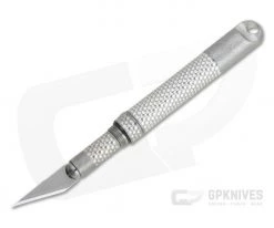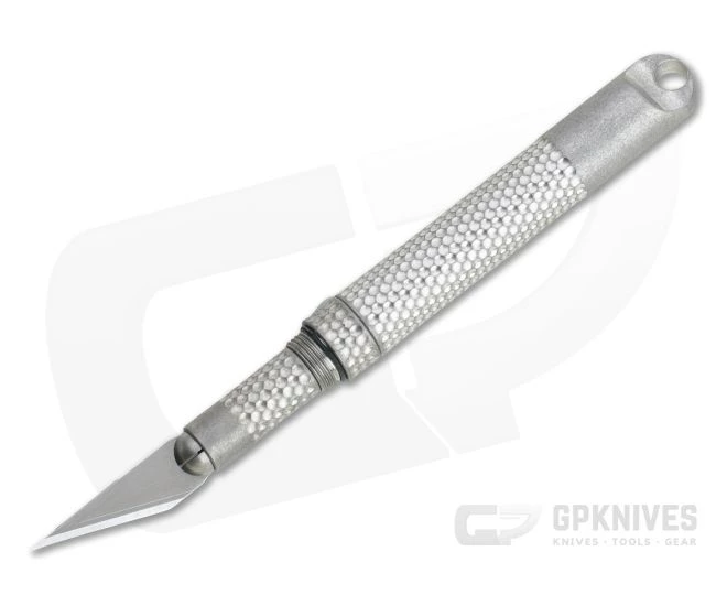 Constructed entirely of Grade 5 Titanium, Maratac’s Key Ring Collapsible Scalpel is always ready at hand when precision cutting is required. Non-slip golf ball pattern texture provides 300% more gripping surface for a secure grip while the #11 hobby blades cut clean and are easily replaceable once they dull. The blade stows in the handle when not in use making this a great keychain or neck lanyard carry. Includes 18 spare blades.