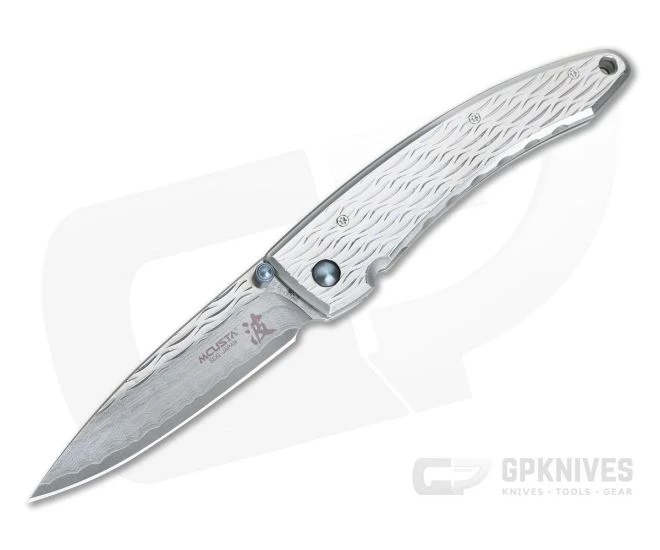 The Mcusta Nami Series offers a functional and elegant gentleman’s folding knife with modern performance and Japanese style. This large version comes equipped with polished and Wave textured 420J2 stainless steel handles and sub-3.5 inch, San Mai Damascus clad VG10 blade with matching wave texture.
