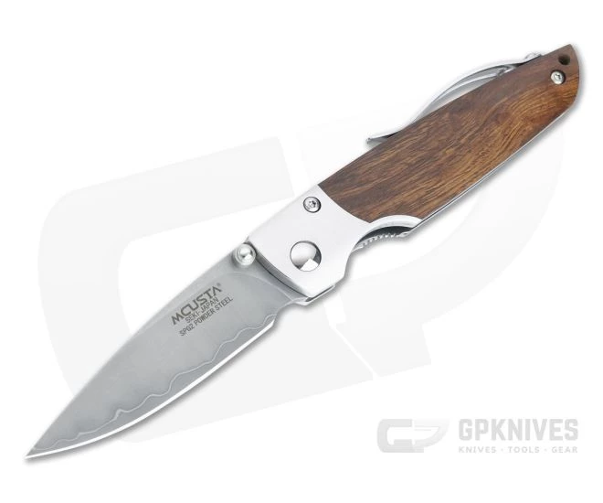 Blade: Made from premium, San Mai SPG-2 stainless steel the drop point blade has silky smooth operation thanks to Mcusta’s special oiled washer system. Dual stepped thumb stud/stop pins offer ambidextrous operation while the flat grind on the blade provides powerful slicing performance balanced with good durability. Striking and stylish, the crowned spine and faux hamon line of the San Mai cladding make this an excellent choice for dress carry.