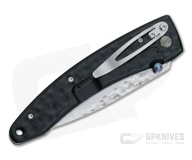 The Mcusta Tsuchi Series offers a functional and elegant gentleman’s folding knife with modern performance and Japanese style. This large version comes equipped with hammered, black coated 420J2 stainless steel handle and sub-3.5 inch, San Mai Damascus clad VG10 blade with matching hammered texture.
